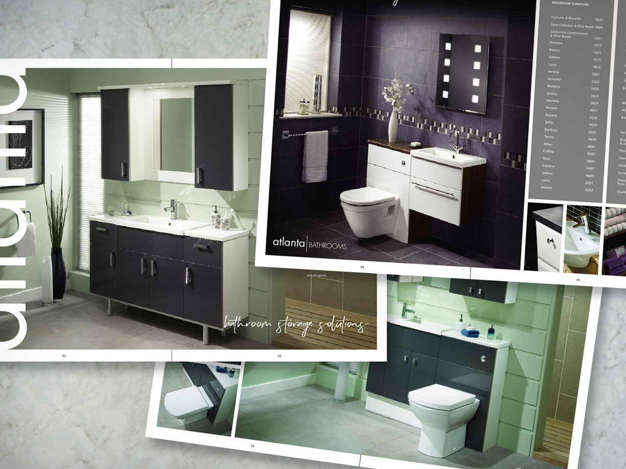 Philips Creative designed and produced a comprehensive sales brochure for Atlanta Bathrooms, manufacturers of exclusive collections of luxury bathroom furniture and storage.
