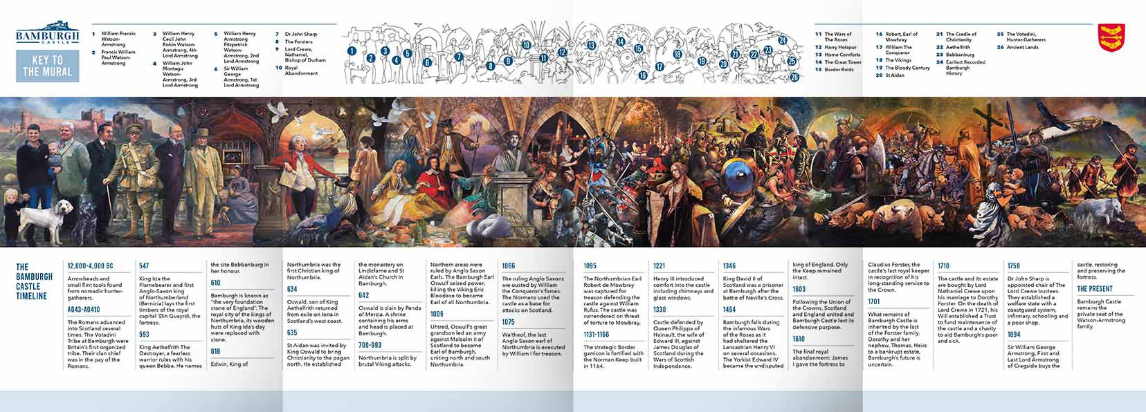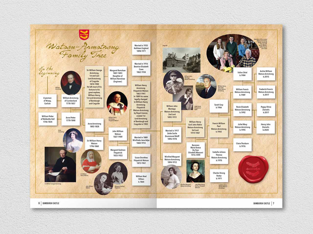 This handsome publication included schematic ‘cutaway’ illustrations, an Armstrong family tree, and another useful setting for the panoramic historical timeline we had produced earlier for display within the castle.