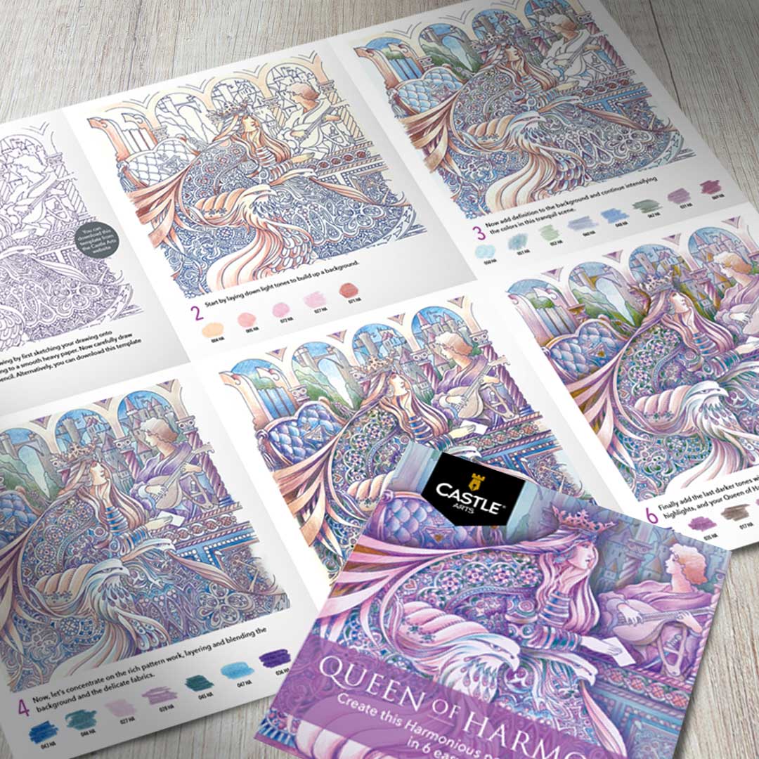 Ongoing design for the product packaging, tutorial literature, and marketing materials for Castle Arts, an arts media manufacturer, involves a blend of aesthetics, know-how, functionality, and brand representation.