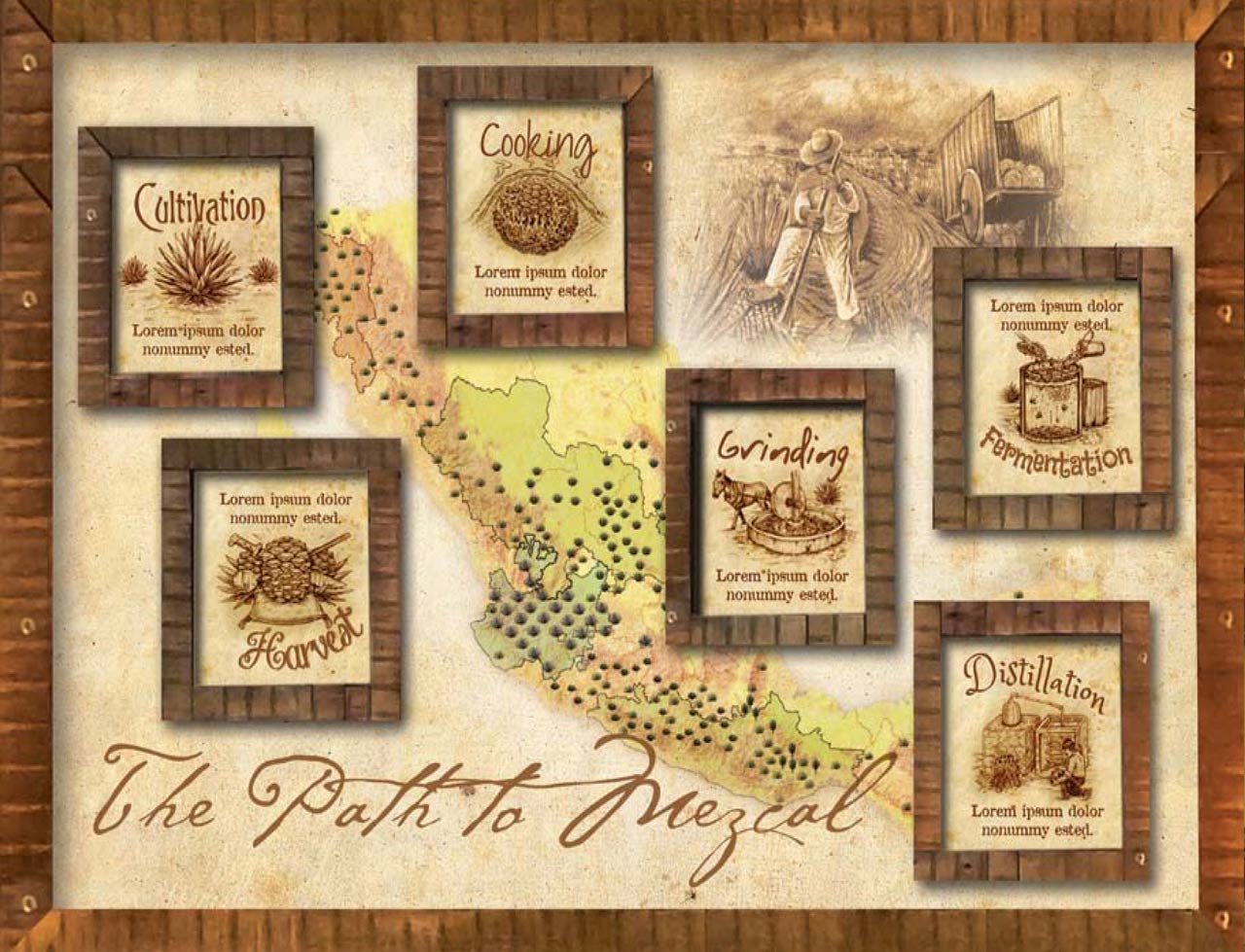 Boxed wood Mezcal wall display proposal.