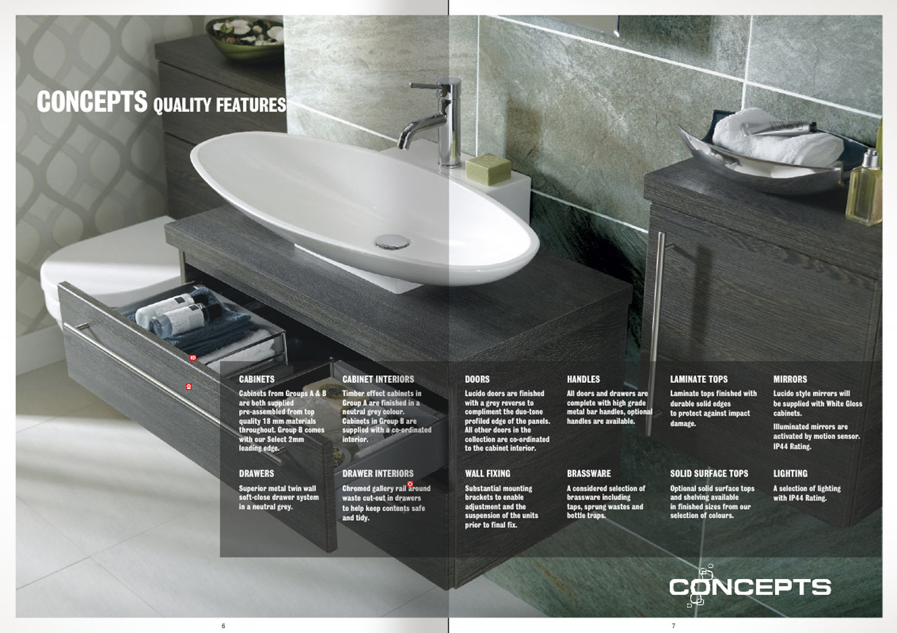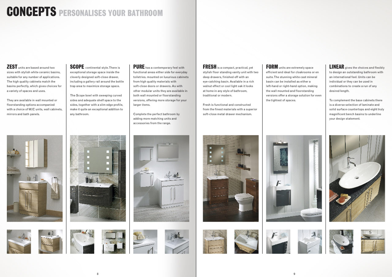 In producing the sales catalogue, due to various constraints, to construct room settings in which to showcase this range of bathroom furnishings was deemed impractical. We stepped in with CGI expertise to demonstrate the required layouts and lighting effects. The catalogue also covered technical data and price list.