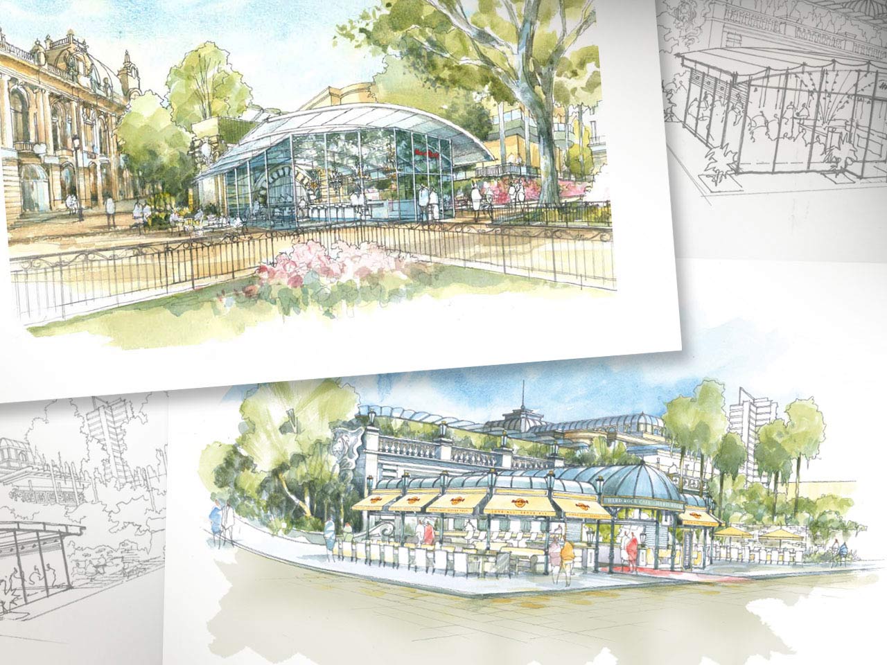 Architectural design concepts for two Hard Rock Cafés to be located around Casino Square, Monaco. The brief presented many challenges, for instance how do we incorporate the essence of Hard Rock into the grand styling of the existing surroundings.