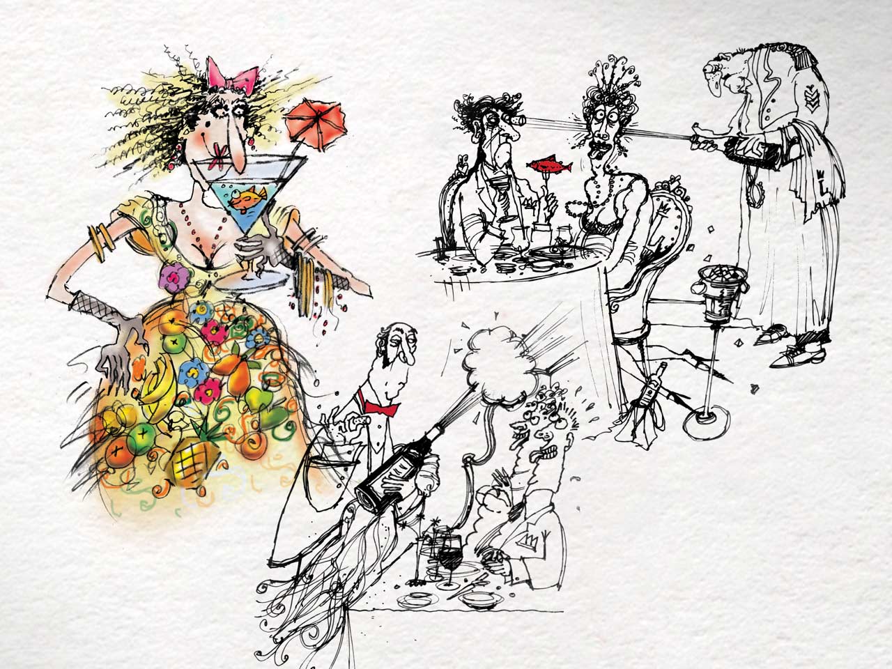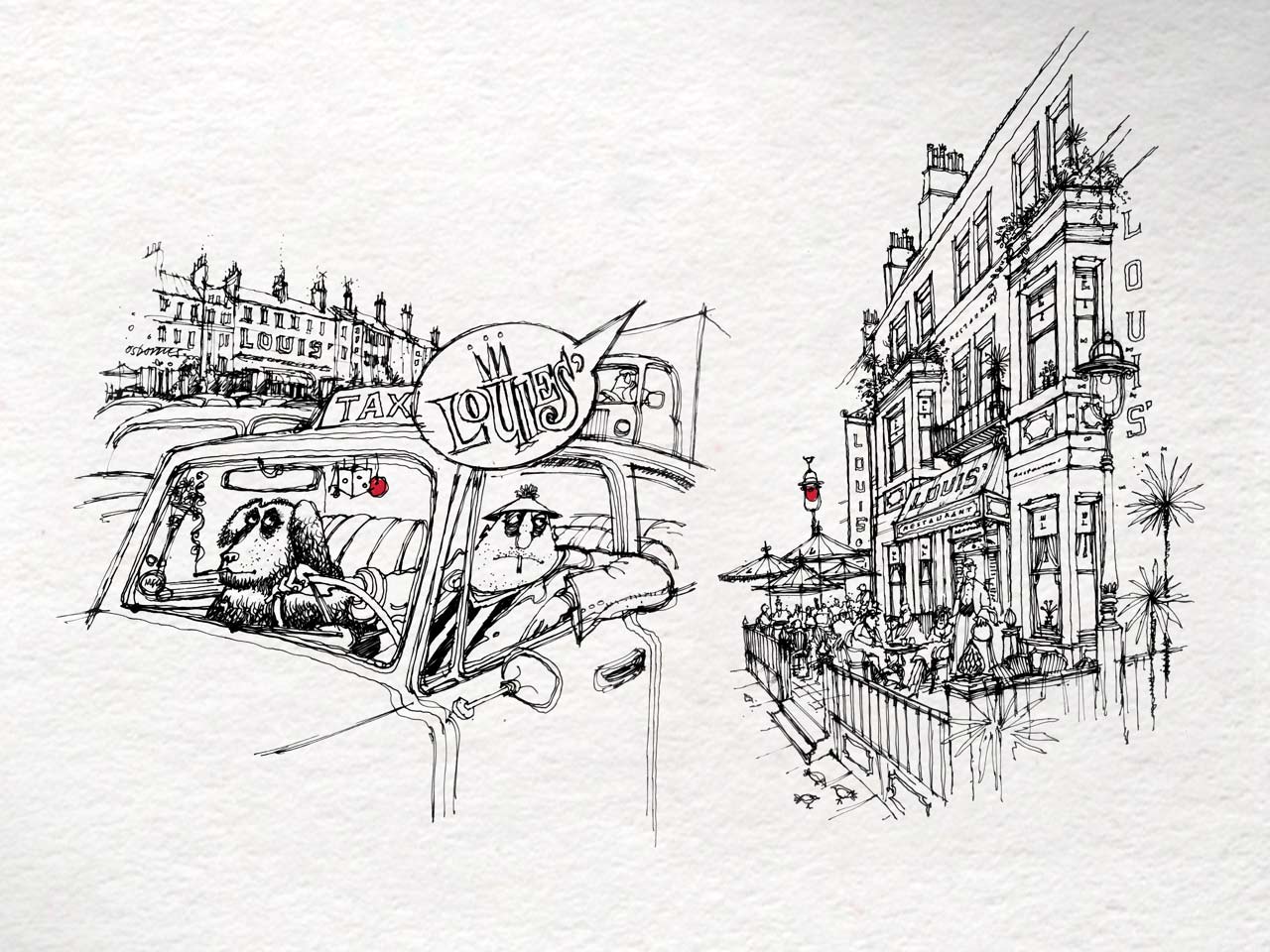 In answer to a brief which required something a little sophisticated but with humour, we fulfilled the request with over 100 stylish cartoons, applied across the interior design, ad campaigns, menus, literature, everything.