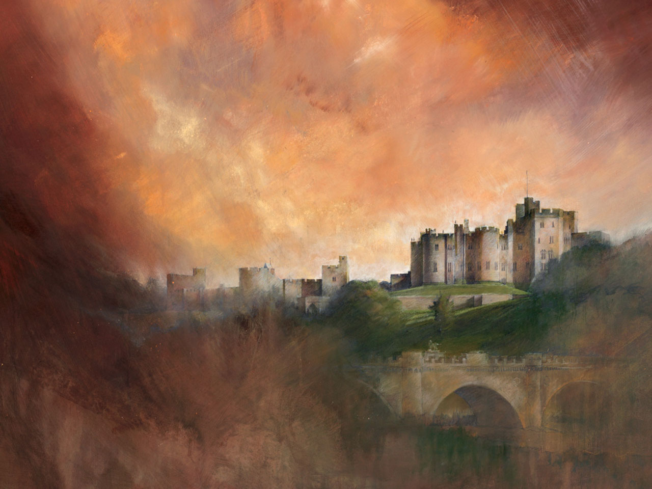 Below right: Another of Peter's paintings, Alnwick Castle Sunset, graced the cover of the Duke of Northumberland's previous book, Lions of the North.