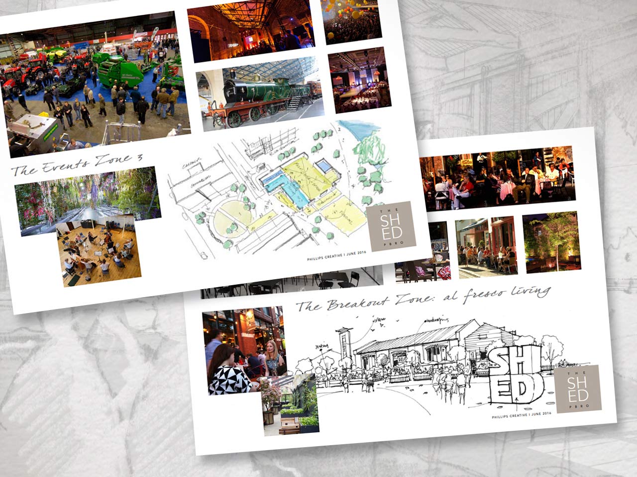 Concept sheets for The Shed, Fetton Quays, Peterborough.