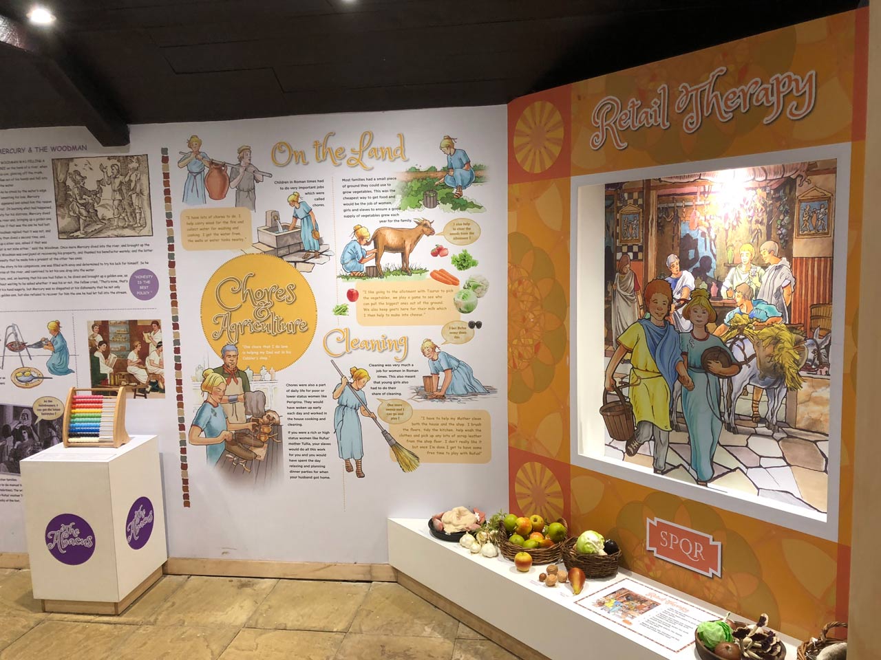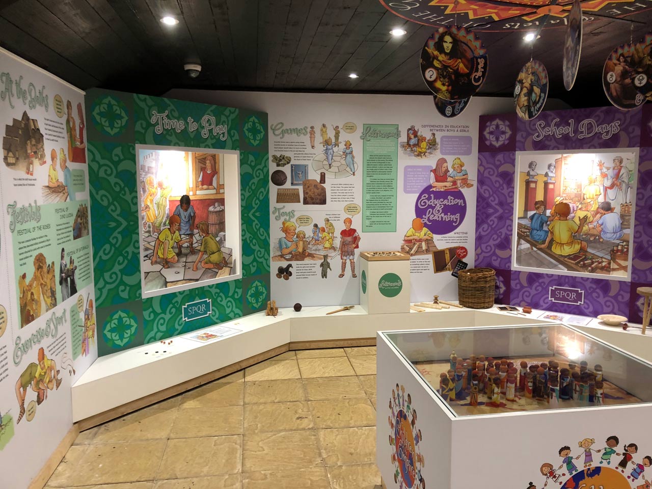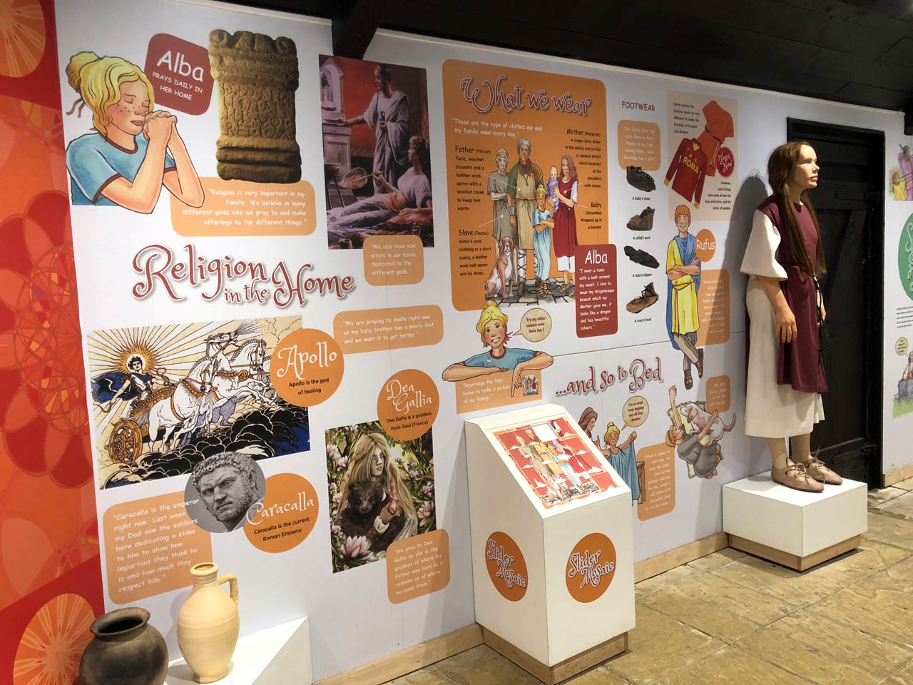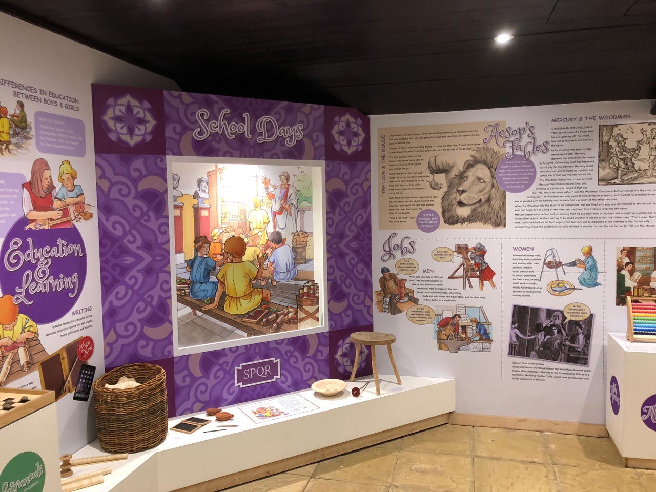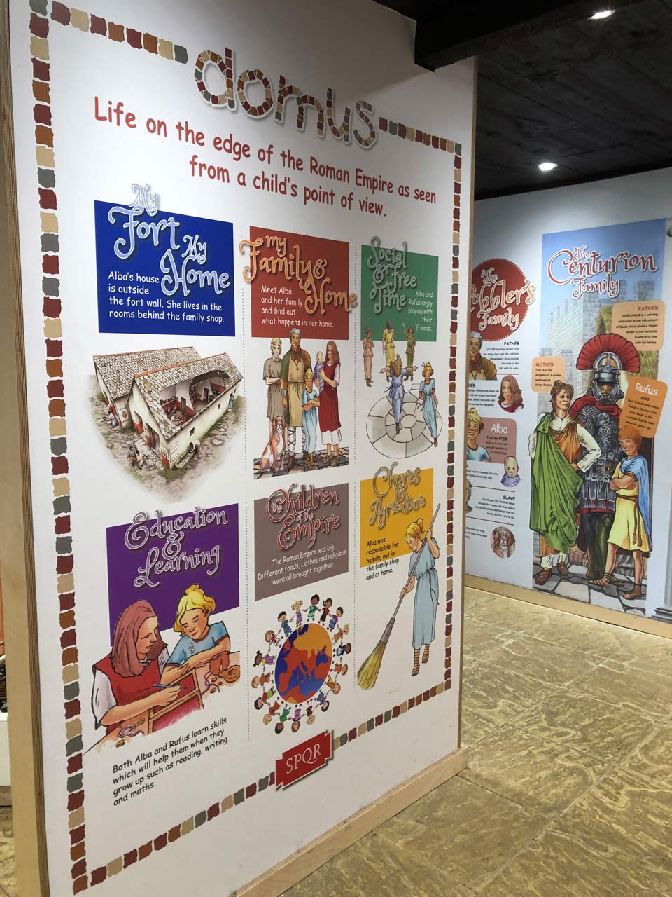 The many topics and aspects of Roman life featured include: Family life, Social and playtime, Education, Eating and drinking, Home life, and Cooking.